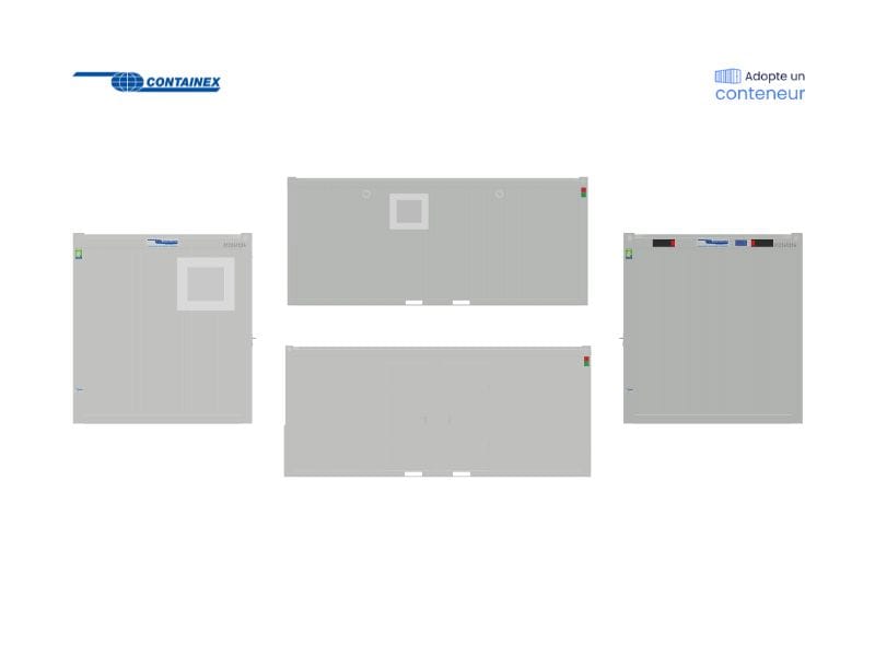 Equipement standard : 2 portes extérieurs | 2 vasistas | 2 luminaires LED | 8 prises de courant | 5 toilettes | 3 urinoirs | 4 lavabos | Chauffage soufflants et extracteurs d’air