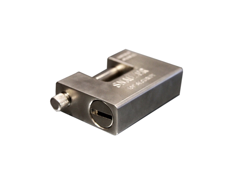 Grâce au corps en métal robuste et à la conception spéciale du cadenas, l’anse de verrouillage est protégée de manière fiable de tous les côtés contre les tentative effractions au pied-de-biche et le sciage. La plaque de blindage protège le mécanisme de fermeture contre le perçage et l’arrachement.