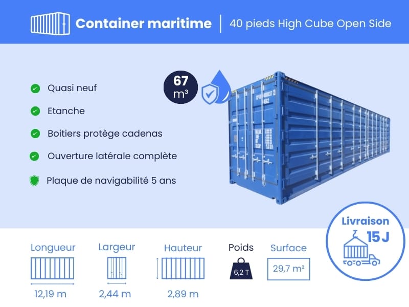 Container maritime 40 Pieds HIGH CUBE OPEN SIDE PREMIER VOYAGE
