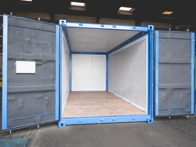 Containers maritimes de construction européenne, homologué norme ISO. Empilables et résistants comme des containers maritimes traditionnels. Isolation évitant la condensation.