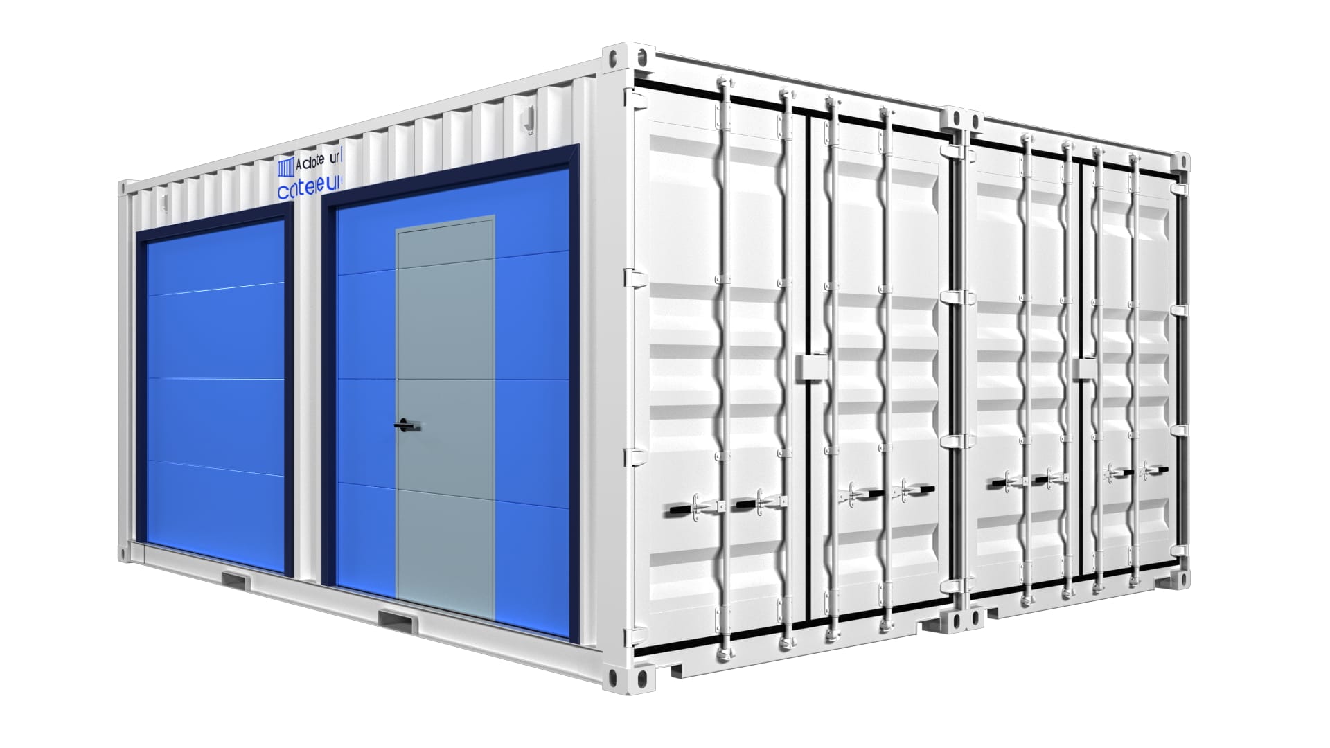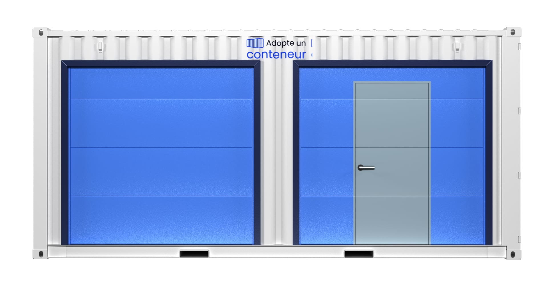 Garage préfabriqué en containers maritimes 28 m² avec double porte sectionnelle