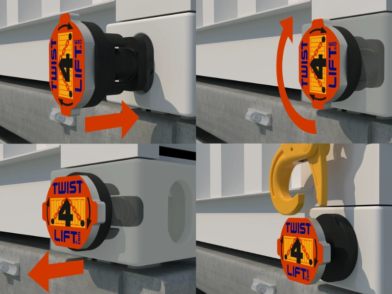 Les crochets de levage pour container maritimes Twist4lift sont conçus pour une utilisation sur des coins de containers conformes à la norme ISO 1161.