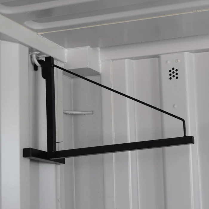Conçu pour être suspendu en toute sécurité aux anneaux en D que l’on trouve à l’intérieur de tous les containers maritimes. Le support s’appui sur la parois du container au moyen d’une barre horizontale (à assembler au support principal).