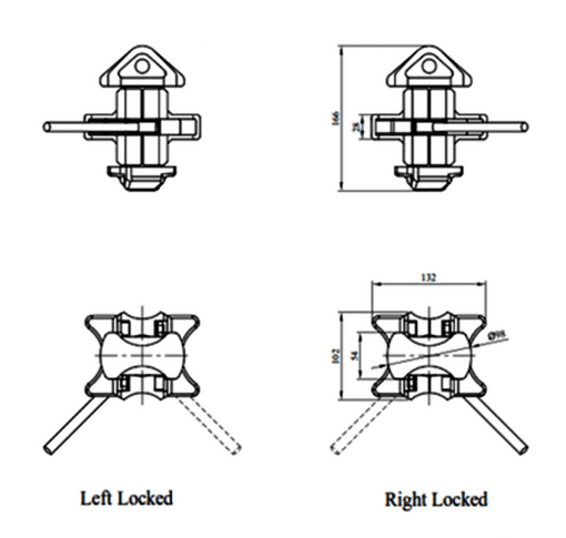 Le twistlock comporte une plaque avec une goupille de positionnement à chaque extrémité qui s’insère dans les trous des coins ISO des containers. Il sont verrouillables et dotés d’un levier qui peut être engagé ou désengagé pour verrouiller ou déverrouiller deux conteneurs maritimes posés l’un sur l’autre.