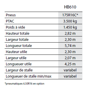 • Dimensions totales : Hauteur : 2,82 m – Largeur : 2,30 m – Longueur : 5,74 m